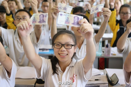6月3日,河北衡水二中为每位备战高考的高三学生发放了两张5元崭新连号人民币留作纪念。十元钱代表“十全十美”,连号则代表“顺顺利利”,这是该校为多年来考前减压活动之一,也是送给考生们的祝愿。