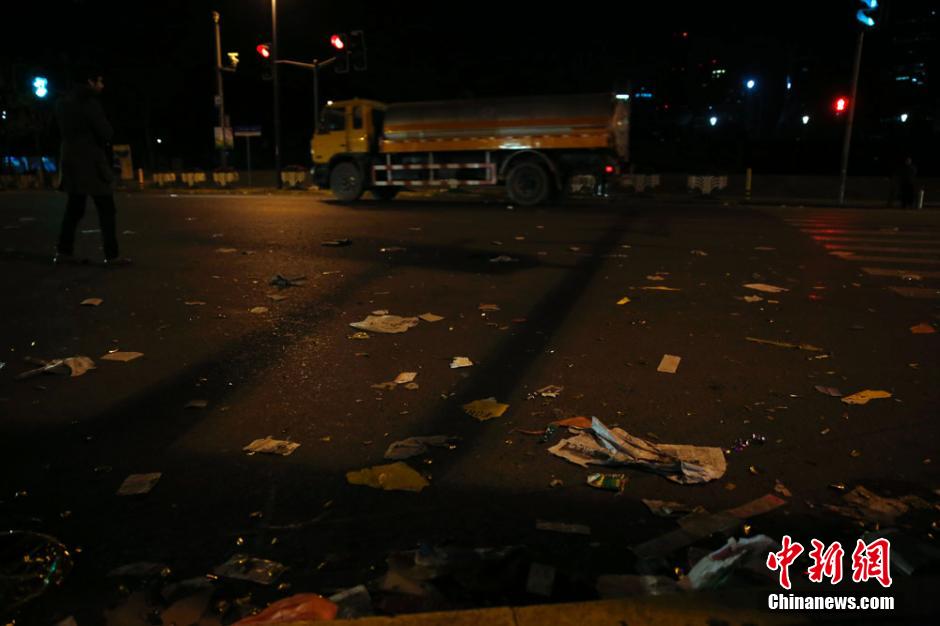 2014年12月31日晚23时35分许,上海市黄浦区外滩陈毅广场发生群众拥挤踩踏事故,致35人死亡,42人受伤。事故发生后,上海市连夜成立工作组。事故原因正在调查中。图为事故现场。汤彦俊 摄