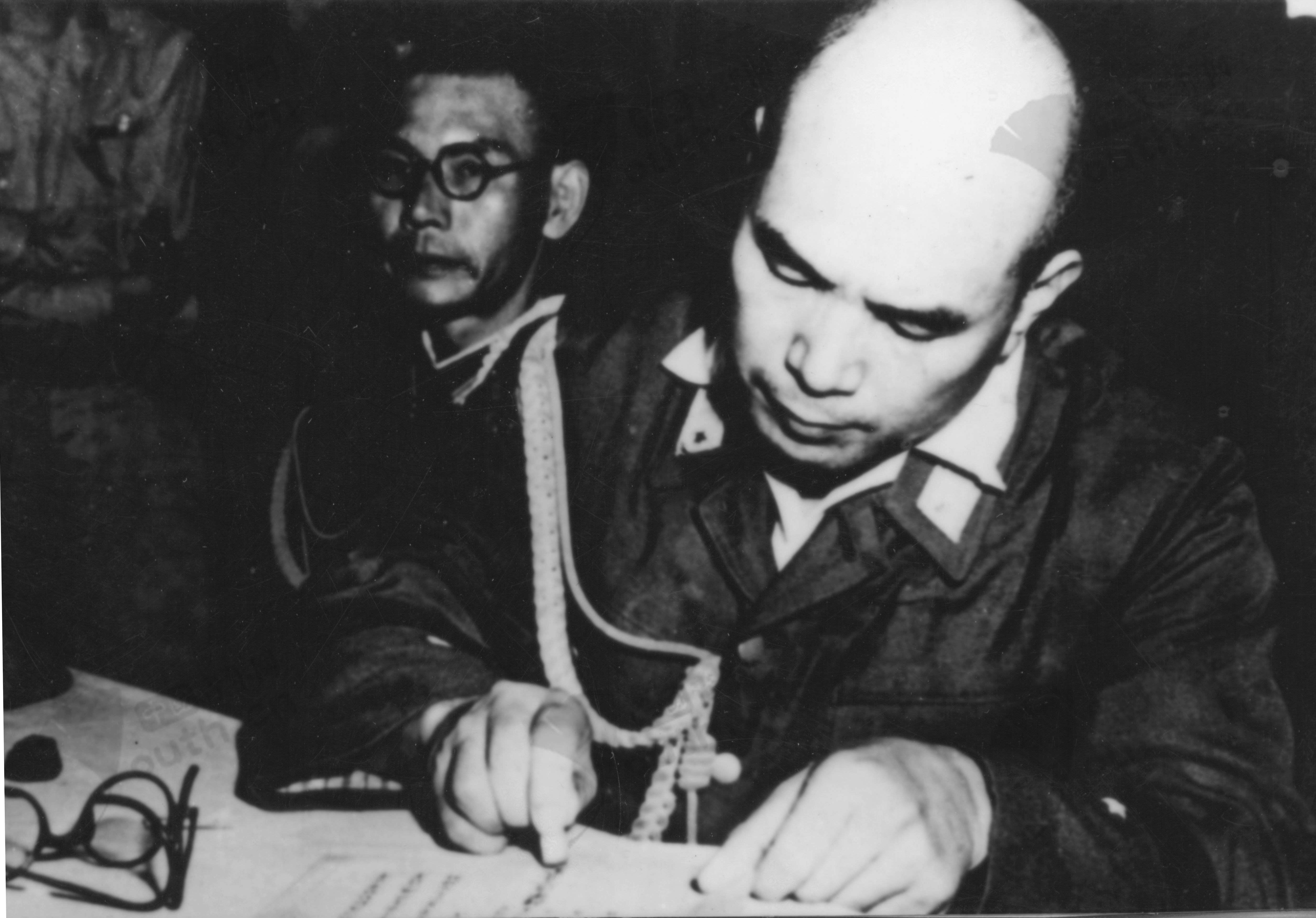 日军投降代表在受取书上签字盖章。芷江抗战胜利受降纪念馆供图