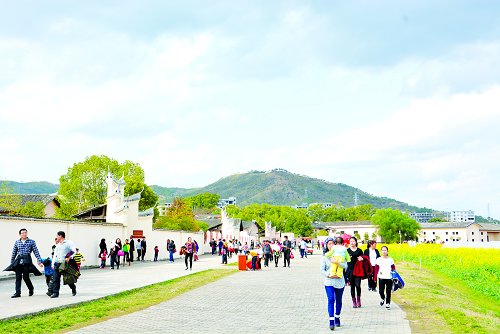 共和国摇篮景区红井游览区游人如织