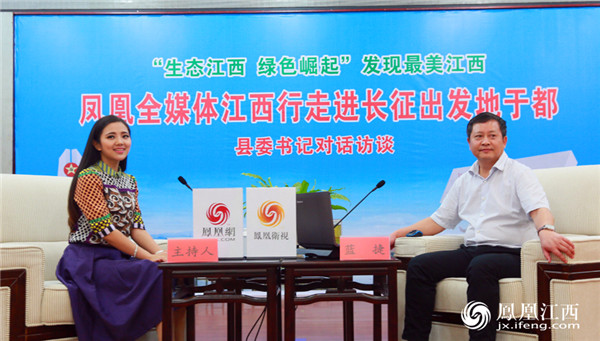 于都县委书记蓝捷接受媒体的访谈。(王东摄)