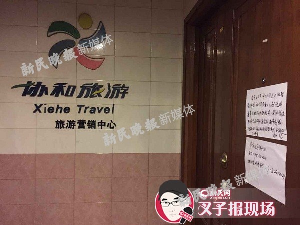图说:协和旅行社办公室空无一人,门口张贴出告示。新民晚报新民网萧君玮 摄