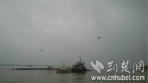 荆楚网消息(记者 余宽宏)6月2日11点20分,荆楚网记者在监利沉船江面看到,两驾直升机在沉船上方盘旋了十几次。潜水员来到现场,已经穿好潜水服开始下水。江面水流湍急,阴天有雾霾。