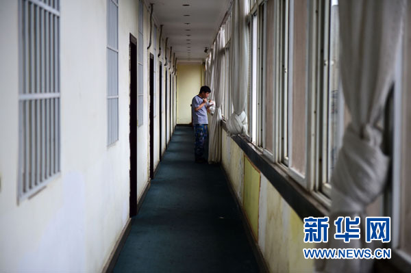 6月4日,官东所在潜水队的一名队员站在驻地走廊上吃饭,两个多小时后,他与官东一起将再次奔赴搜救现场进行水下搜救。 新华社记者 郝同前 摄