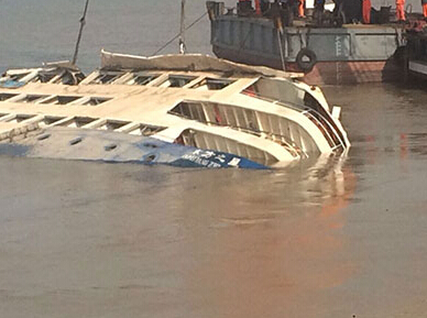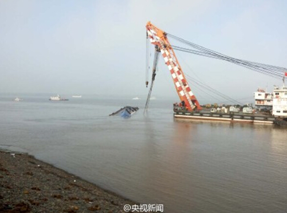 【“东方之星”起吊迅速 船体已侧翻过来】