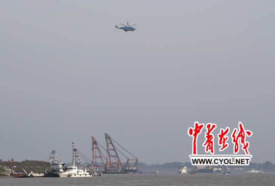 6月5日,湖北监利“东方之星”号出事客轮水域上空,一架直升飞机参与搜寻任务。