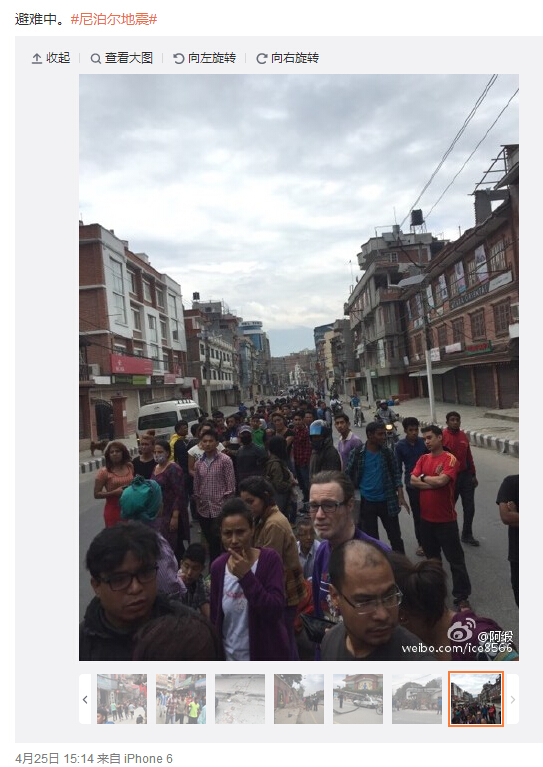 地震发生后,身处尼泊尔的中国网友“阿缎”第一时间通过网络直播了在尼泊尔中国人的避难与被救助过程。