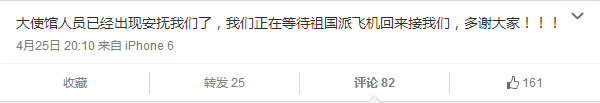 但是半小时后就有好消息传来:国内要派飞机来接滞留尼泊尔中国人啦!