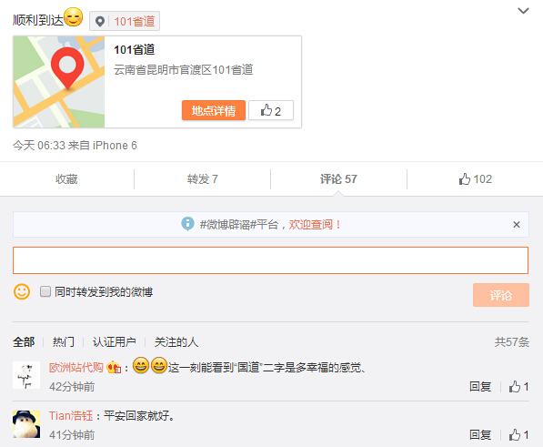 4分钟后,网友“喜欢太阳的我期待着你”通报喜讯:“东航两架飞机已经在昆明机场待命。”