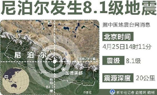 尼泊尔内政部26日宣布,该国25日强震造成的死亡人数已升至1805人,另有4718人受伤。据中国驻尼泊尔使馆方面证实,已有4名中国公民在地震中遇难,另有约10名中国公民受重伤。