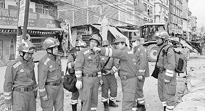 应尼泊尔政府请求,中国国际救援队26日上午抵达尼泊尔首都加德满都特里布万国际机场,赴地震灾区实施国际人道主义救援。中国国际救援队是第一支抵达尼泊尔的联合国认可的重型国际救援队。据救援队领队、中国地震局震灾应急救援司司长赵明介绍,救援队大部分队员参加过多次国内外地震救援,具有丰富的救援经验。