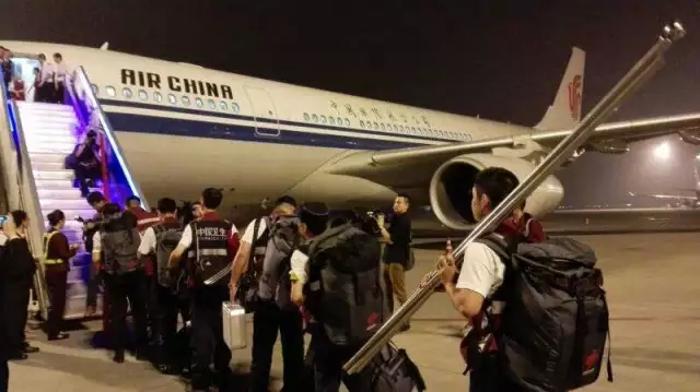 中国政府医疗队在登机前集体宣誓:不辱使命,完胜而归!之后全体队员乘坐民航包机飞赴尼泊尔加德满都。