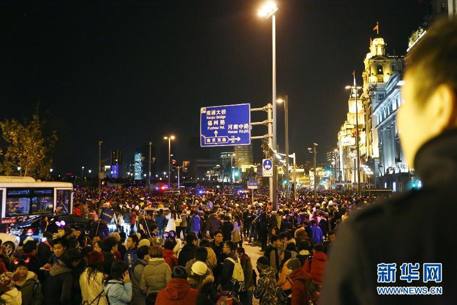 这是踩踏事故发生当晚的上海外滩(2014年12月31日摄)。记者1日凌晨从上海市政府核实,2014年12月31日晚23时35分许,上海外滩陈毅广场发生群众拥挤踩踏事故,致35人死亡,42人受伤。事故发生后,上海市连夜成立工作组。上海市委书记韩正、市长杨雄要求全力做好伤员抢救和善后处置等工作。事故原因目前正在调查中。图片来源:新华网