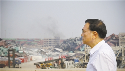 昨日,李克强在天津港“8·12”瑞海公司危险品仓库特别重大火灾爆炸事故现场。 刘震 摄