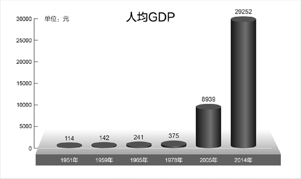西藏生产总值由1965年的3.27亿元增加到2014年的920.8亿元,增长281倍。1994年以来,西藏地区生产总值连续20年保持两位数增长,年均增速高达12.4%。1965年西藏地方财政收入仅为2239万元,2014年达到164.75亿元,年均增长高达14.46%,自我发展的能力不断增强。全区工业增加值由1965年的0.09亿元增加到2014年的66.16亿元,增长735倍,年均增长14.4%。第二产业增加值在地区生产总值中的占比由1965年的6.7%提高到2014年的36.6%。2014年,全区社会消费品零售总额达364.51亿元,比1965年的0.89亿元增长了409倍,以年均13.1%的速度递增;进出口总额达22.55亿美元,比1965年的0.07亿美元增长了321倍,年均增长12.5%。