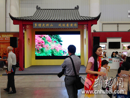 在第八届华中旅游博览会现场,黄冈展馆举行丰富多彩的民俗表演节目和扫微信送礼品和漂流门票活动,吸引了不少市民和游客关注。