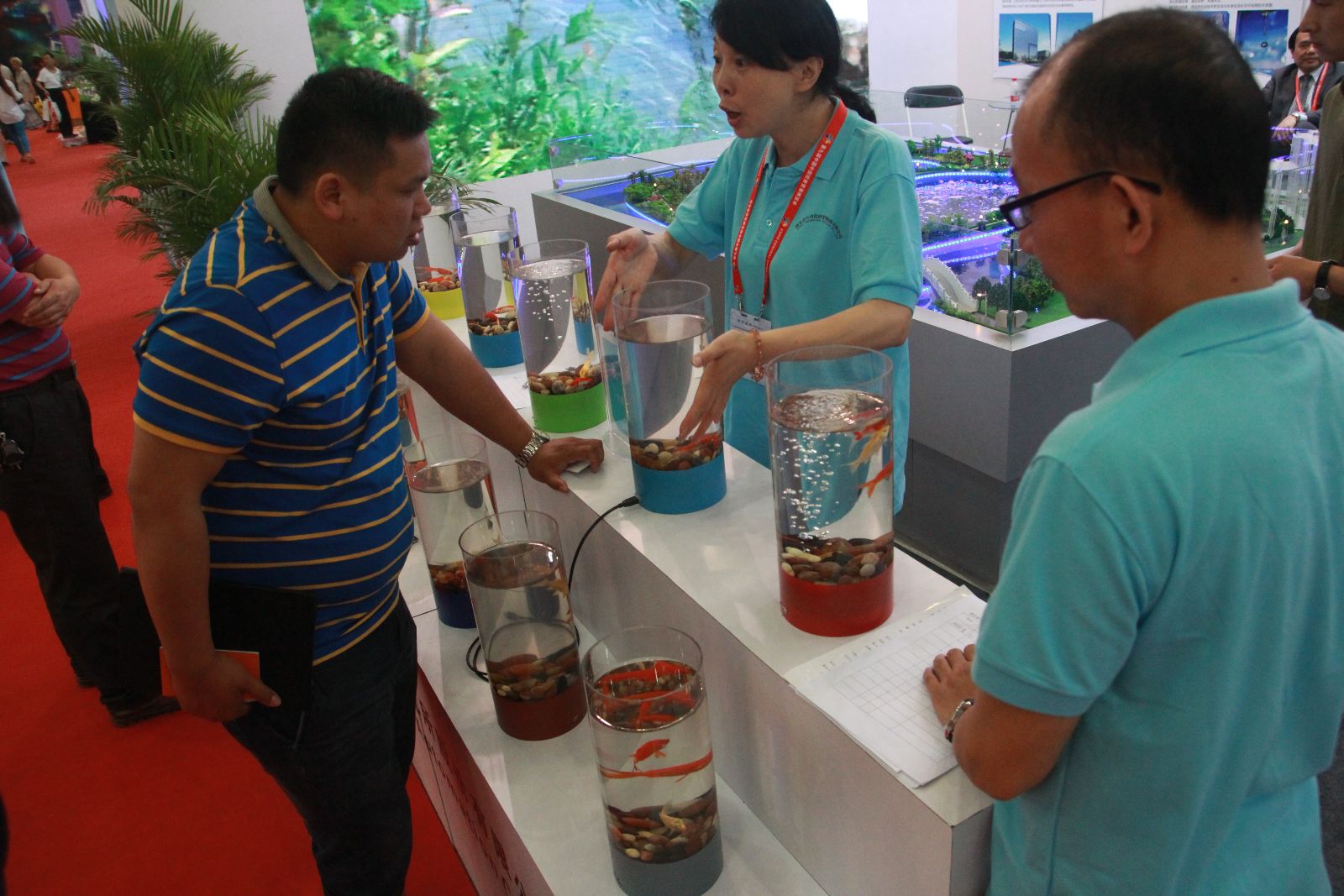 荆楚网讯(记者陈博雷 钟剑桥)一个个圆柱形的鱼缸里,水质清澈透明、金鱼灵活俏皮……在5月18日开幕的中博会现场,湖北省自动化研究所股份有限公司展出的鱼缸不换水实验,引得大人小孩纷纷驻足观赏。