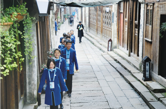 第二届世界互联网大会,志愿者们穿着统一的“浙江蓝”制服前往会场,为来自世界各地的嘉宾带去微笑。资料图