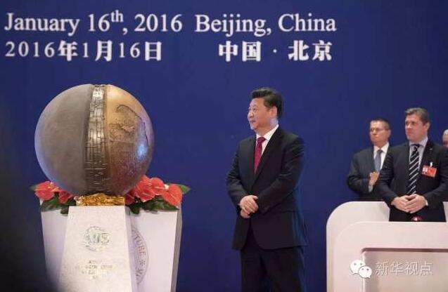 2016年1月16日,亚洲基础设施投资银行开业仪式在北京举行。国家主席习近平出席开业仪式并致辞。这是习近平为亚投行标志物“点石成金”揭幕。新华社记者李学仁摄