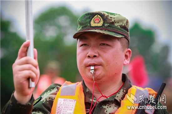 “嘟嘟嘟……”一声声尖锐的哨声不停响起,和现场机器轰鸣声交织在一起,顺着水面传的很远。