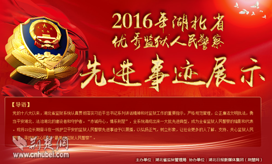 荆楚网消息(记者张城 吴娜)11月16日,记者从湖北省监狱管理局获悉,由湖北省监狱管理局主办,湖北日报新媒体集团(荆楚网)承办的2016年湖北省优秀监狱人民警察评选活动正式启动。此次活动,是湖北省监狱管理局立足建设过硬监狱人民警察队伍,积极践行社会主义核心价值观,展示监狱人民警察良好社会形象的主旋律活动之一。