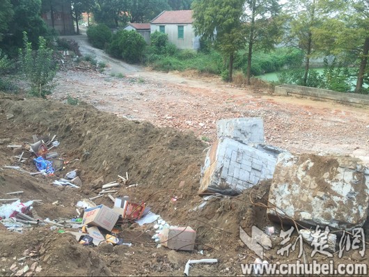 该校老教工宿舍被淹水之后倒塌,旧的教学楼用来安置在水灾中失去住房的教职工。这片废墟是之前的教职工宿舍,被水淹后成为危房被拆除,现在8位教职工被安置在旧教学楼。
