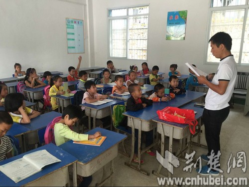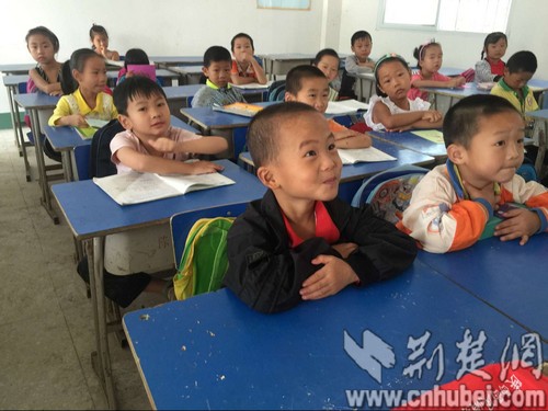 李忠恕村的李白杨小朋友正在上语文课,他在读二年级 荆楚网记者瞿祥涛摄