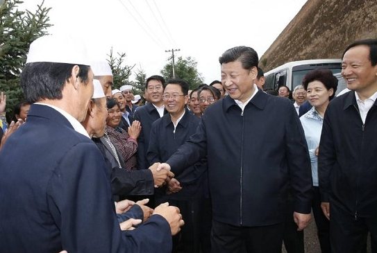 2016年7月18日,习近平在固原市西吉县将台堡同村民们交谈。新华社记者 鞠鹏 摄