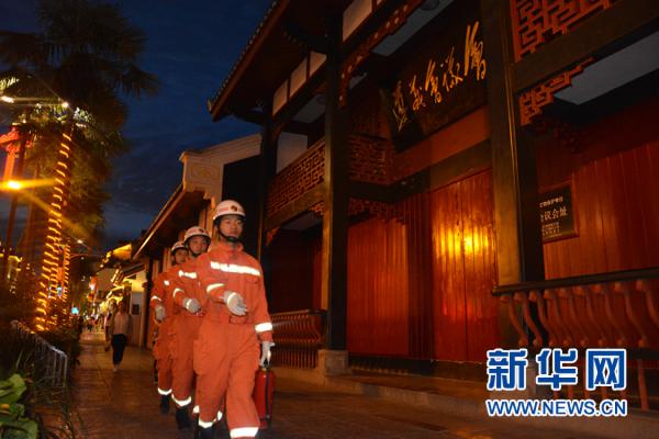 会址中队消防员在遵义会议会址前巡逻。新华网发