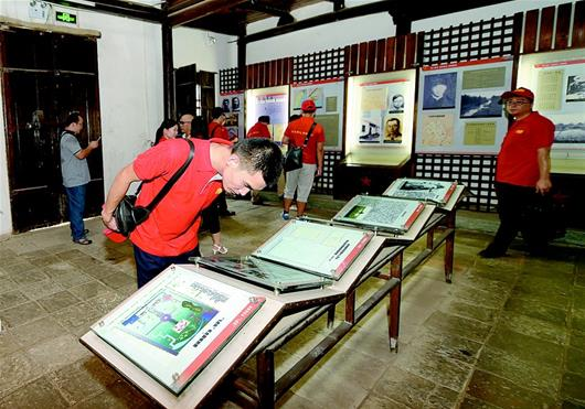 图为:寻访团在监利周老嘴湘鄂西革命根据地旧址参观。