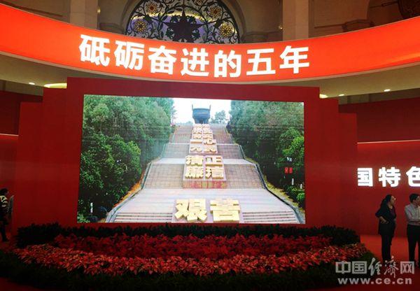 “砥砺奋进的五年”大型成就展序厅。经济日报-中国经济网记者 王惠绵摄