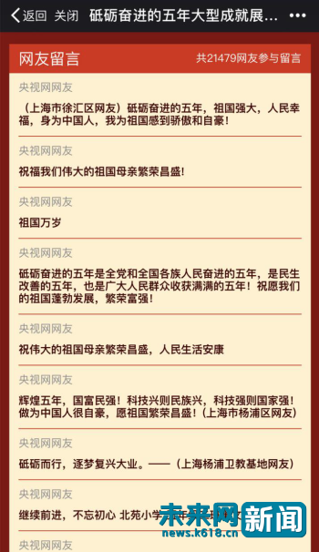“砥砺奋进的五年”大型成就展网上展馆留言页面。