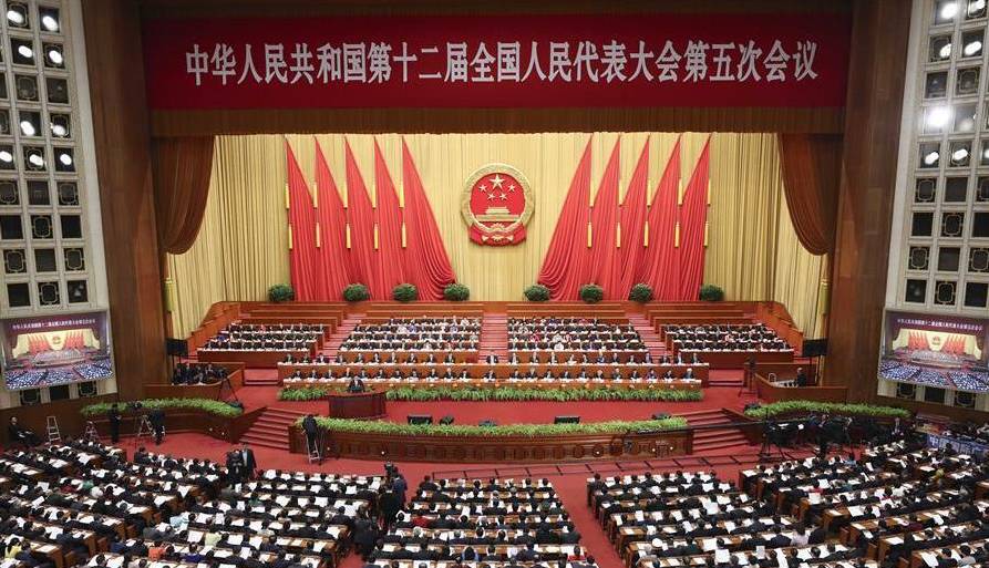 受十二届全国人大常委会委托,全国人大常委会委员长张德江向大会报告全国人大常委会工作。