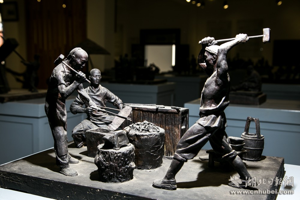 李三汉和学生们经常就类似的问题进行讨论和模拟。铁锤抡起至头顶后侧的半空中,蓄势欲发,雕塑整体画面的张力也达到极致。李三汉立马拍板,“就照这个改!”