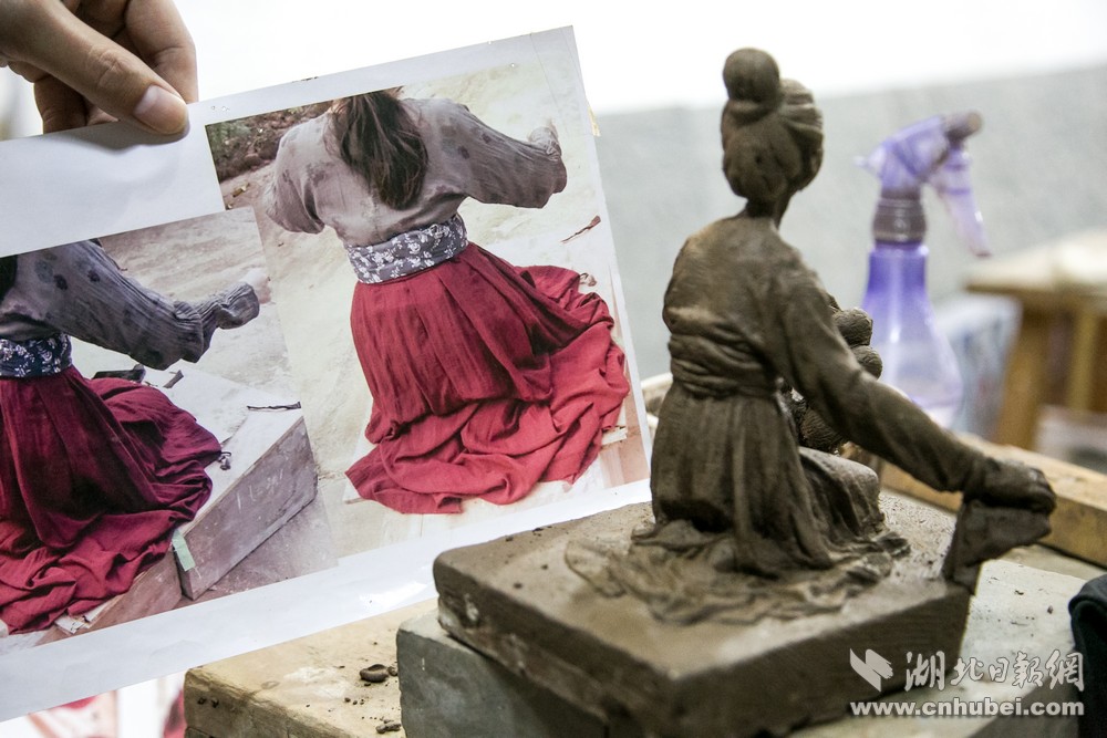 人物雕塑创作时会参考一些影视剧中的衣着服饰风格。记者刘建维 摄