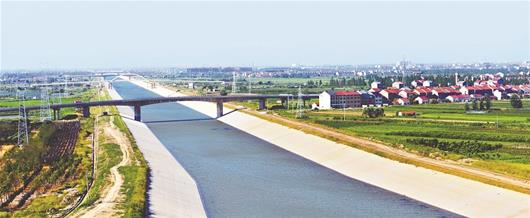 图为:引江济汉渠道与美丽乡村建设交相辉映