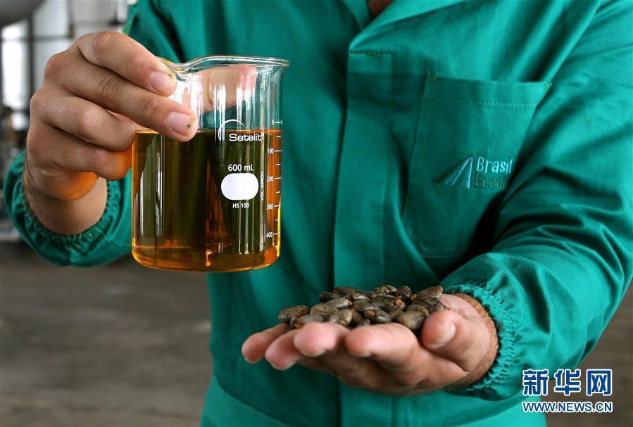 当今世界面临气候变化、生态退化、资源危机、重大自然灾害等全球性环境问题,绿色经济、绿色增长、绿色发展、绿色金融等一系列“绿色”概念应运而生。如何发展才是长久之道?为共同应对区域乃至全球生态环境面临的挑战,金砖国家纷纷走上绿色发展之路,以绿色发展新理念推进生态保护和城市建设,力求经济发展、社会发展与环境保护的“多赢”。金砖国家的绿色发展道路各具特色,成果丰硕,注重共享,保持密切沟通。在第二个“金色十年”里,金砖国家将进一步加强国家间的环境合作,增加交流对话,对接需求,分享应对全球环境问题的最佳实践,着力推进城市可持续发展,推动开展务实合作,实现互利共赢,不断提升金砖国家在国际环境可持续发展领域的话语权和影响力。这是2008年3月31日,在位于巴西东北部城市伊拉瓜拉的巴西生态柴油公司,一名工人展示生物柴油成品和原料之一蓖麻籽。巴西主要选用大豆、棉籽、葵花子、油菜籽、蓖麻籽和棕榈等生产生物柴油,餐厅和家庭煎炸食品后的废油也被收集起来提炼生物柴油。巴西近年来在环保意识普及、清洁能源使用以及政府对低碳产业的支持等方面收效明显,是全球范围内开展生物燃料研究最早的国家之一,也是生物燃料应用比较广的国家之一。生物燃料是指通过生物资源生产的燃料乙醇和生物柴油,可以替代由石油制取的部分汽油和柴油,是可再生能源开发利用的重要方向之一。生物燃料不仅节能减排,也为生产甘蔗等生物燃料原料的百姓带来好处,这个庞大的产业链已成为拉动巴西经济增长和就业的强大引擎。新华社记者 张传奇 摄 图片来源:新华网