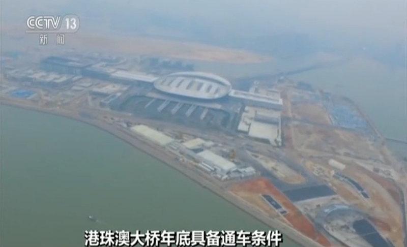根据央视最新报道,港珠澳大桥将在年底具备通车条件。(央视截图)