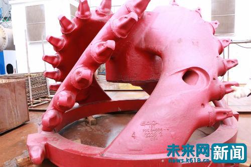 费牖公介绍,“天鲲号绞刀电机总功率为6000kw,绞刀转速可以根据土质变化无极调速。其挖掘功率居世界前列,亚洲第一。”图为“天鲲号”的绞吸船中铰刀,未来网记者刘璐摄。