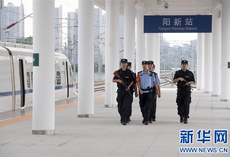 6月6日,铁路民警在武九铁路客运专线阳新站巡逻。