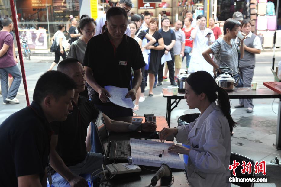 8月8日21时19分在四川阿坝州九寨沟县发生7.0级地震,震源深度20千米。截至9日上午10点,成都市12个献血点共接待197位爱心市民,其中118位成功捐献血液。黄文杰 摄