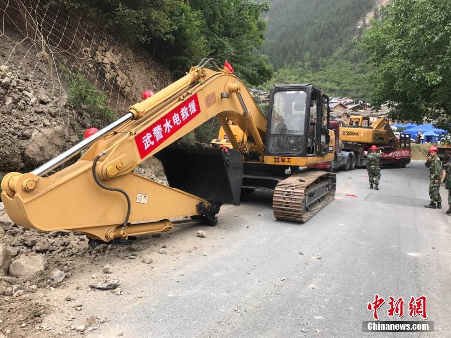8月10日,武警水电第三总队九支队携带八台重型设备进入景区抢通景区内的主要道路。8月8日21时19分在四川阿坝州九寨沟县发生7.0级地震,震源深度20千米。中新网记者 杨勇 摄