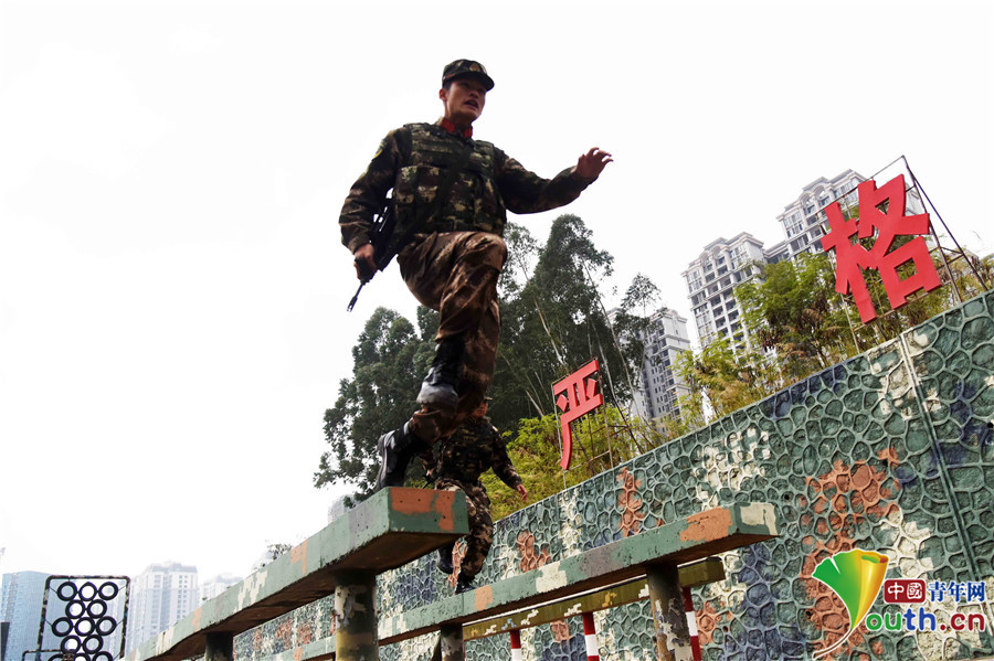 武警官兵正在快速通过300米障碍。 通讯员 王俞、董亚涛 摄