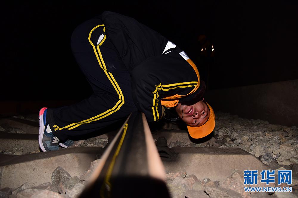 梁鹏辉趴在冰冷的钢轨上检查钢轨方向是否平直 冬季,陕北地区昼夜温差很大,工区管辖线路受到冻害的影响,经常发生断轨问题,严重危及形成安全。为了解决这个问题,班长马晓兵经常请教师傅李鹏,把他所大学掌握的知识和师傅教授的实践相结,带领大家反复试验,总结出了“打桩夯基”法,对铁路线路石渣下面的地基进行稳固夯实,确保线路平稳。