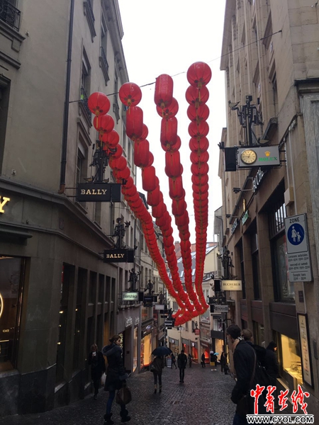 为迎接习主席对瑞士进行国事访问,洛桑市老城区的步行街上挂起了大红灯笼。鞠辉摄