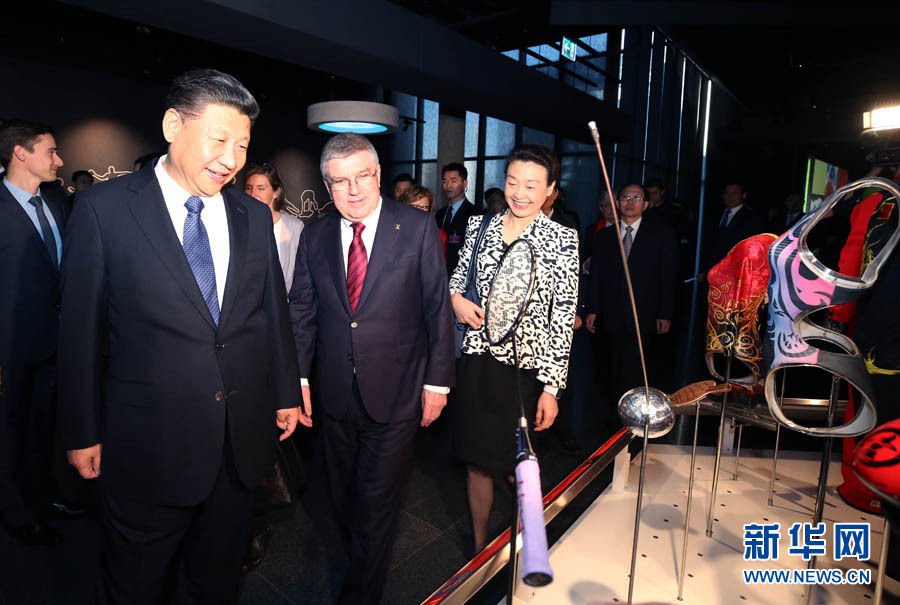 会见后,习近平和彭丽媛在巴赫主席夫妇陪同下,参观国际奥林匹克博物馆。他们一同参观了奥运发展史展览、往届奥运会奖牌展、北京奥运会展品、2012年伦敦奥运会休战墙、中外运动员比赛用具,观看了往届奥运会视频集锦、历届奥运会比赛项目电子显示屏。巴赫全程为习近平讲解。