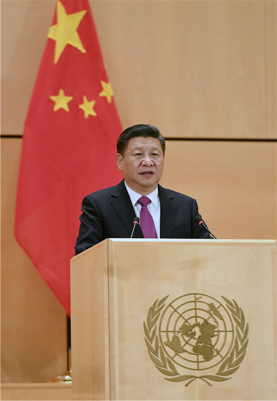 1月18日,国家主席习近平在瑞士日内瓦万国宫出席“共商共筑人类命运共同体”高级别会议,并发表题为《共同构建人类命运共同体》的主旨演讲。新华社记者 饶爱民 摄