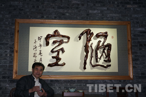 2014年,由政府和社会各界支持、由杨玉冰出资建造的我国首座根书艺术博物馆在四川乐山市五通桥区风景秀丽的菩提山下落成。图为艺术馆镇馆之宝,根书作品《沁园春?雪》。