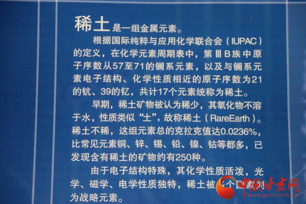 据了解,北方稀土的前身是包钢8861稀土实验厂,始建于1961年。经过50多年的发展,北方稀土已经拥有37家包括直属厂、分公司和全资、控股、参股公司,分布全国11个省(市)自治区,拥有稀土选矿、冶炼、功能材料、深加工应用产品的完整产业链,是跨地区、跨所有制、多领域的高科技企业集团。稀土元素广泛应用于冶金、石油化工、军事、玻璃陶瓷、农业、数码产品、绿色能源、医疗、净水、交通等多个领域。来自千龙网的记者王洁实说,高中时期只在书本上了解过稀土,包头稀土展览馆用通俗易懂的形式让人们了解稀土的存在形式和应用领域,通过参观和专家的讲解,让自己开拓了眼界,增长了知识,所以也值得所有人,尤其是青少年来参观了解。