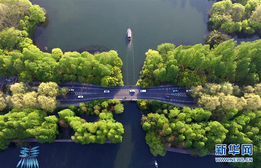桃红柳绿,西湖迎来一年中的美丽时节。 新华社记者王定昶 摄